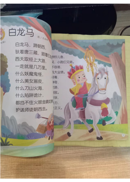 唐僧骑马咚那个咚,后面跟着个孙悟空。孙悟空,跑得快,后面跟着个猪八戒。猪八戒,鼻子长,后面跟着个沙和尚······