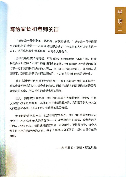 本书汇集了孩子们经常发生的八种情绪,比如害怕、难过、喜欢自己、嫉妒、生气、关心别人、想念、担心等,用彩图和易懂的故事展现出各种情绪的表现特征及相对应的处理方式,使孩子形象掌握调理自己情绪的可行办法。__eol__从小培养管理情绪的良好习性,有助于健全人格的形成,将使孩子受用一生。
