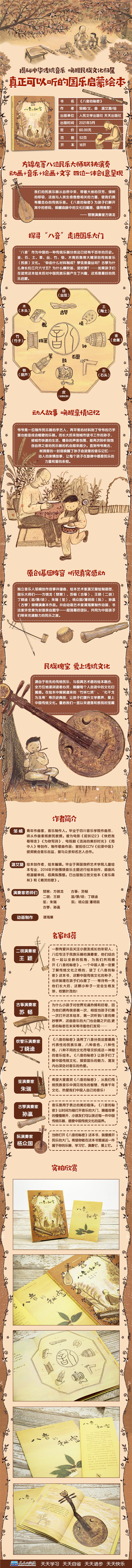 1. 了解八音的秘密 2. 重拾宝藏——传统民乐之美 3. 通过绘本让现代的孩子们了解民乐,是好的音乐启蒙 4. 通过两代人讲述传统民乐的历史和变迁