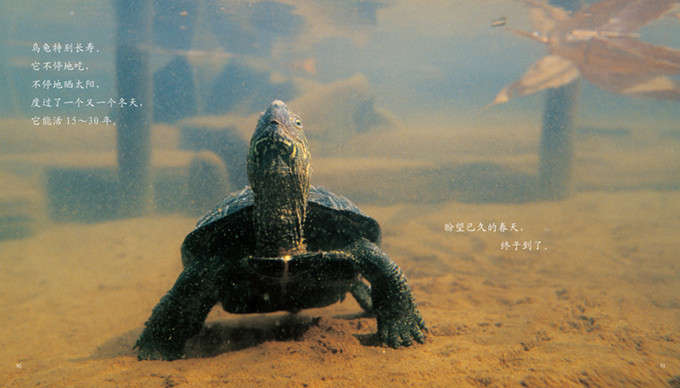 雌龟每次会产好几个蛋,而且它会把蛋埋进土里;判断蛋里的乌龟宝宝是否发育顺利,不用借助高科技,只要看看蛋壳上是否有花纹就可以了;幼龟从蛋里孵化出来以后,并不会马上从土里钻出来,只有肚子饿了,它才会钻出来;乌龟具有良好的生活习惯,它们特别喜欢晒日光浴……