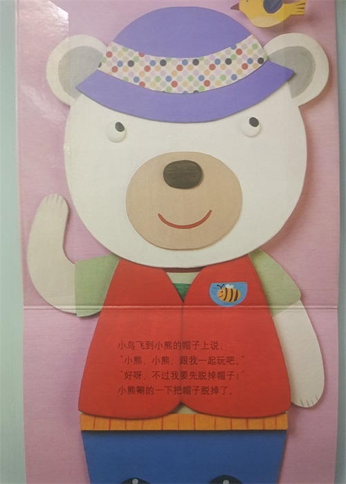 刷的一下子,小熊脱掉了自己的帽子,看看变成什么样子了?刷的一下子,小熊又脱掉了自己的衣服、裤子、袜子和鞋子,小熊要干什么呢?哦,原来他换上了自己的泳衣,那么现在一起来玩吧!这是一本有趣的纸板书,通过不同大小的页面,将小熊脱衣服的过程展现给孩子,给孩子带来了阅读的乐趣和探索的兴趣。