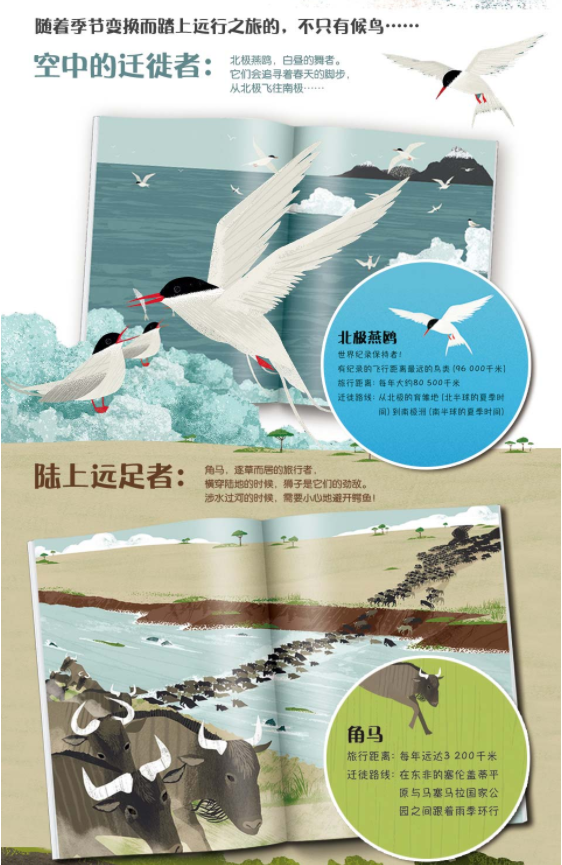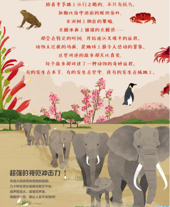 让我们翻开这本书,跟随动物们的脚步,一起来欣赏这段迁徙旅途中神奇的风景,感受大自然的不可思议。