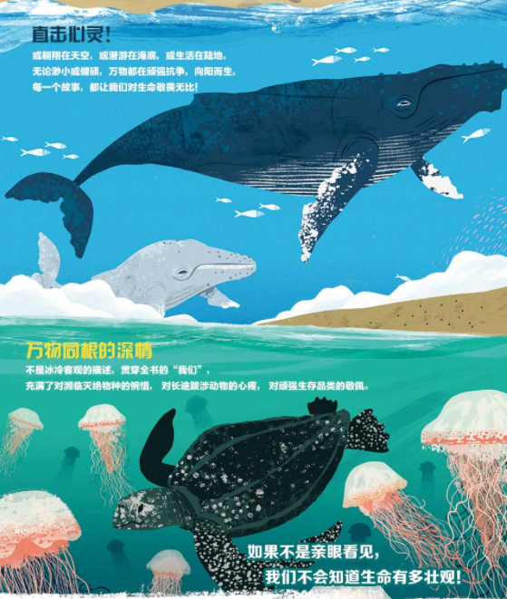 孩子天生对大自然充满了好奇,这本书以一种第一人称、容易理解的方式来介绍自然中的知识比如适应、比如物种延续。我们希望通过这样的科普,让孩子了解,在人类生命之外,还有很多生物,或大,或小,都在用自己的方式,展现生命的震撼,我们也希望通过这样的画面和文字,让孩子了解、去享受、去关心、去爱护自然和生物。