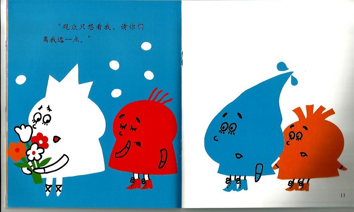 黑色啦给被套上了颜色,送给了其他的色啦。色啦们一觉醒来,奇怪,自己的脸怎么变成了大花脸?《新被套》介绍了三原色和三间色,告诉小朋友们三间色是怎么形成的。书末附加美育活动为“调颜料水”。