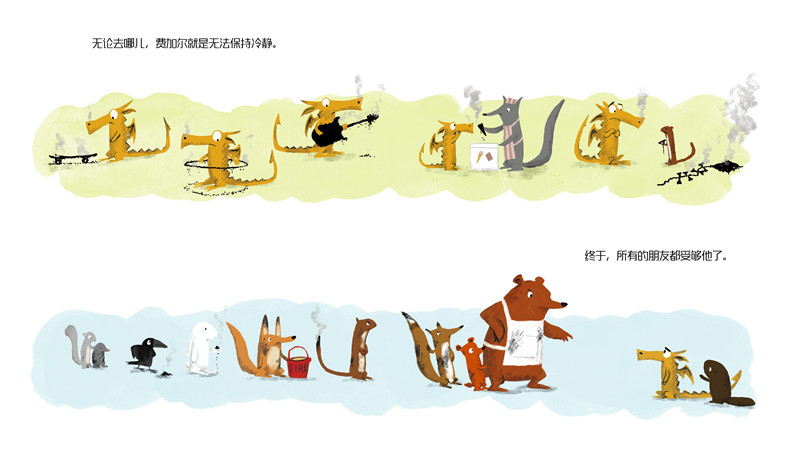 总是气得喷火的费加尔,只要有人让他做的事情不合心意,他就会把事情搞得一团糟!朋友们渐渐疏远了他,他感到十分孤独。在妈妈的帮助下,他终于发现了控制暴躁脾气的方法,知道了每个小动物都有控制脾气的小妙招,他也发现了喷火能力的更好用处。