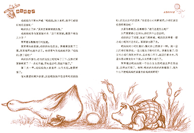 爱搞恶作剧的狗汪汪拿一根稻草,在笨笨猪的鼻孔里捅了一下。