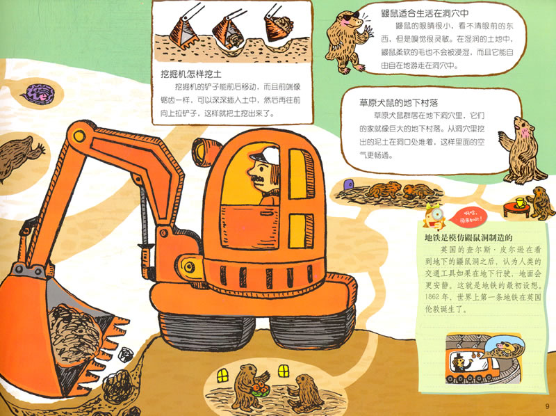 我们身边很多东西,都是模仿动物才制成的。直升机模仿了蜻蜒,挖掘机模仿了鼹鼠,潜水艇模仿了抹香鲸……人类从大自然中获得灵感,制作了很多便于生活的东西,这就是神奇的仿生学。