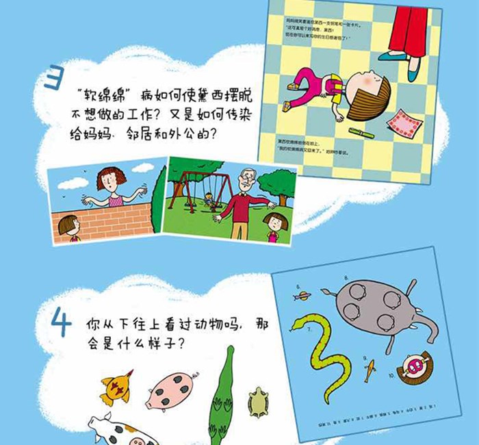 ☆ 帮助孩子了解日常生活的认知绘本 ☆ 黏土制作的动物形象+丰富多样的象声词汇,请宝宝听一听、猜一猜,初步建立形象思维。 ☆ 绘本中涉及的活动贴近幼儿生活,可做丰富的延伸活动。
