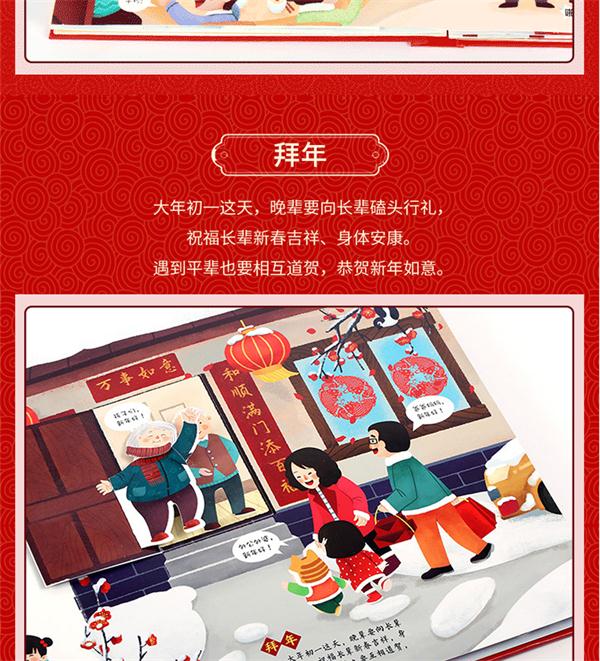 4、知识层面涵盖广:无论是远古的年兽传说、还是祭灶,或从腊月开始年前准备直到正月十五的元宵节……图书内容覆盖面广,知识时间跨度长,孩子们能从书里学习到更多的知识。