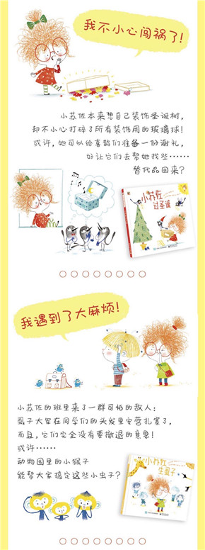 本书讲述了小苏佐与她的动物朋友们日常生活中幽默可爱的小故事,既有贴近生活的平实,又有充满童趣的奇思妙想。鼓励小朋友们团结友爱,开动脑筋想办法解决问题。小苏佐去野餐:小苏佐去野餐,却遇上了一队正在干活的蚂蚁。或许,她可以给蚂蚁们一点儿小小的好处,让它们……也帮她干点活儿?小苏佐上学记:早上,小苏佐睁开眼睛。她觉得特别累,一点儿也不想离开暖和的被窝。或许,她可以发挥一点儿想象力,再请瓢虫们帮个忙,这样就能……不用上学了?小苏佐过圣诞:小苏佐本来想自己装饰圣诞树,却不小心打碎了所有装饰用的玻璃球!或许,她可以给喜鹊们准备一份谢礼,好让它们去帮她找些……替代品回来?小苏佐生虱子:小苏佐的班里来了一群可怕的敌人:虱子大军在同学们的头发里安营扎寨了,而且,它们完全没有要撤退的意思!或许……动物园里的小猴子能帮大家搞定这些小虫子?小苏佐寻宝记:小苏佐在花园里展开了寻宝行动。她找呀找呀,可是一无所获!或许,她可以带小鼹鼠去找新家,好让它帮忙从草地底下……把宝箱找出来?