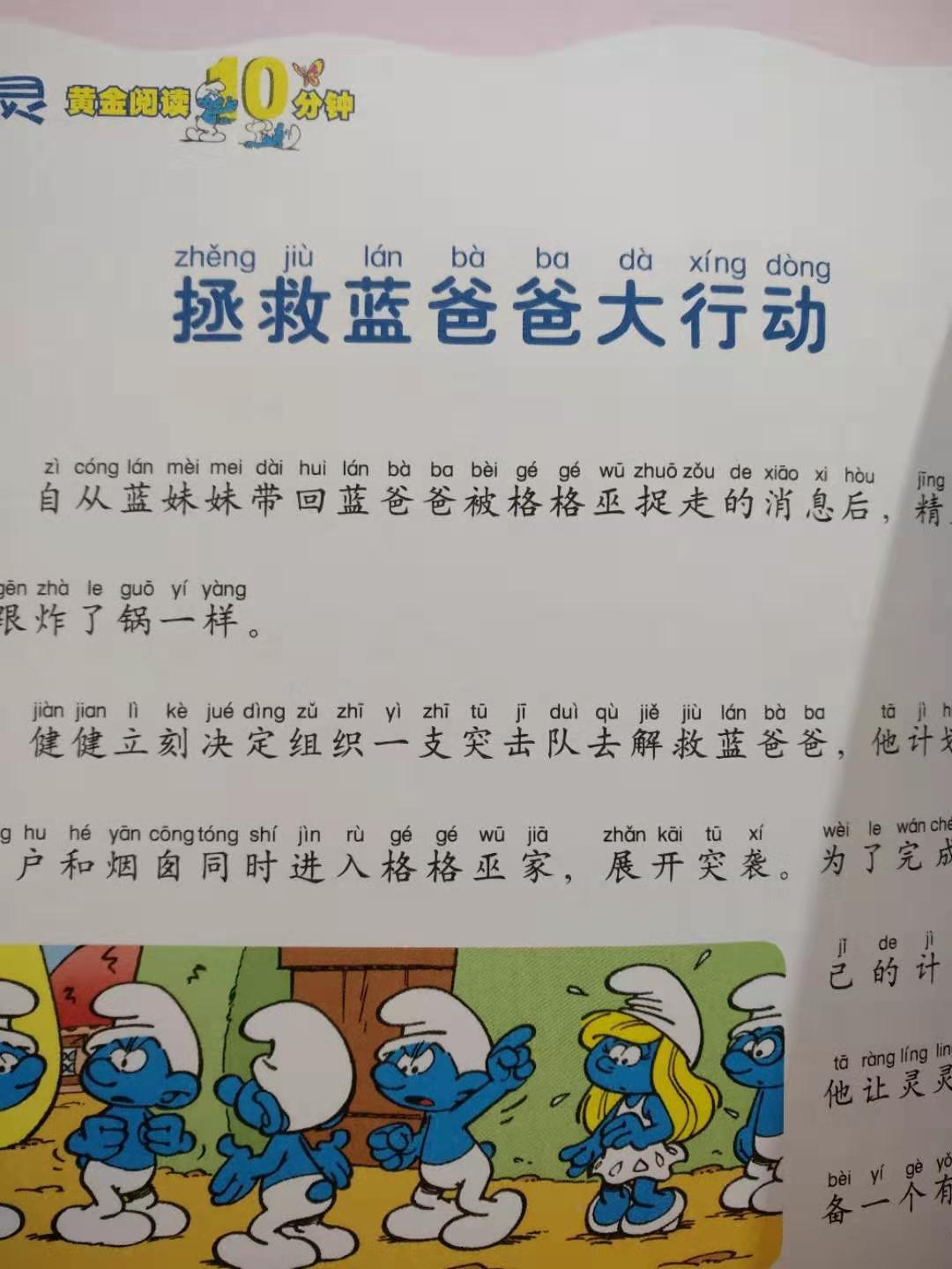 每个父母都希望自己的孩子拥有聪明的头脑、宽广的胸襟、善良的心灵和幸福的人生。而这一切,都可以通过阅读获得。著名教育家苏霍姆林斯基认为:“阅读越早,对智力发展越有益,孩子的阅读越早,阅读时思维过程越复杂,阅读时对智力发展越有益,7岁前学会阅读,就会练就很重要的一种技能——边读边思考边领会。” 但是,要想把书合适地引入到孩子的世界里,使他们成为一个好的阅读者,家长必须知道三件事——1.和孩子一起阅读经典作品 经典往往讲述的是永恒的主题,在不同年代、不同地域、不同种族,甚至是完全不同的文化背景下,人们共同去思考的话题,共同面对的难题。这些话题古老而现代,因为具有终极的力量,而恒久弥新,永不凋零。因此,能够在趣味盎然的虚幻世界里讨论人类永恒话题的童话,便当之无愧地成了经典作品。“蓝精灵”就是这样一个童话世界里的经典之作。2.和孩子一起预测情节发展 蓝精灵的故事,家长和孩子都是熟悉的。偶尔在关键的词或句子上停下来,让孩子自己说出关键的内容。可以指着书中的插图问问孩子:“你认为接下来会发生什么?”这不仅能增强孩子的参与感,还能锻炼孩子的思考能力和注意力,更有助于深度阅读习惯的培养。3.和孩子一起进行讨论 每个故事的后面都有给孩子的“悄悄话”,引导孩子将蓝精灵的故事与自己的现实生活联系起来,从中收获智慧,引发思考。当然,不要把讨论变成随堂测验,切不可“盘问”孩子对故事的解释。 “蓝精灵黄金阅读10分钟”系列每本书一个主要人物,讲述了其在精灵村生活的种种有趣故事。为孩子提供一种全新的视角,来释放他们的想象力,给予他们探索和创造的自由,来重新审视和塑造现实的世界。