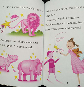 Pinkalicious是一位超级“控”粉红色的女孩,她穿粉红色的衣服,粉红色的鞋子(甚至因为某天收到一双白色的滑冰鞋而闹过一场大乌龙),她的房间也都被装饰成粉红色的。如同所有喜欢粉红色的小女生一样,Pinkalicious性格善良单纯:她相信世间有仙女的存在(她甚至在自家的花园里给仙女们搭建了一个仙女屋);她在睡衣派对上用魔法棒“邀请”了小粉龙来保护“粉红公主”(她和她的朋友们).......而更难得的是,面对这位粉红控女儿,她的家人以及朋友都给予支持与理解,允许她按照应有的方式来完成内心的成长,允许她让自己不断伸展、强大起来,成为一个内心自由而美好的人。……