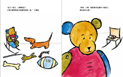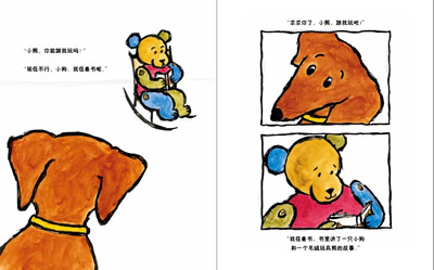 (2) 爱玩的小狗想让小熊陪他玩,可是这会儿小熊只想静静地看看书,他是怎么处理的呢?