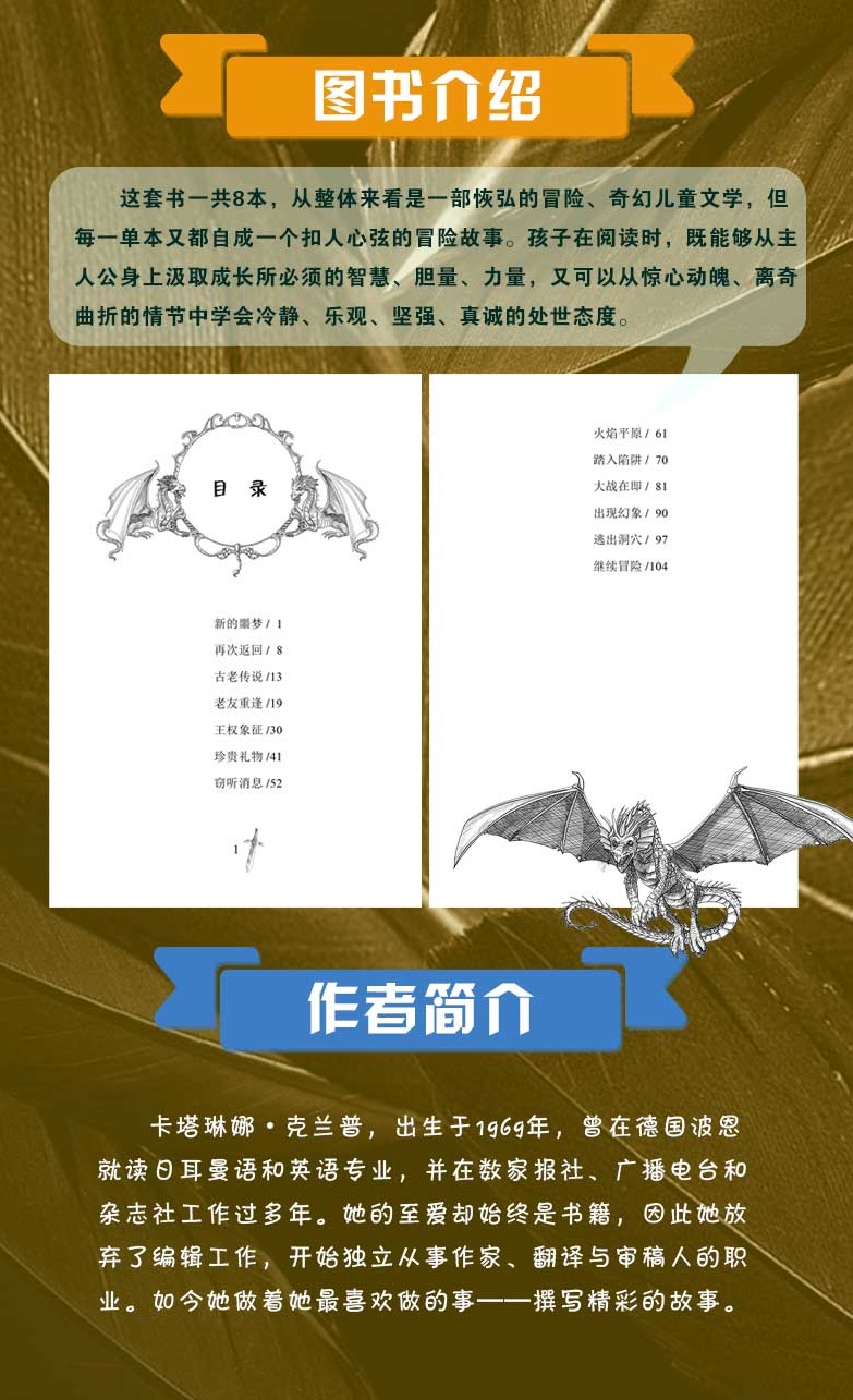 2.以前曾经多次尝试让9岁的儿子读书,*终是这部书让他爱上了阅读。一开始,他还很不情愿。但刚读了几页,就入迷了。而且读完一本就紧接着第二本。不到一周,就读完了整个系列。书的开本大小适合孩子的小手,不厚,篇幅也刚好适合初级阅读水平的孩子。故事不仅男孩爱看,女孩也爱看。