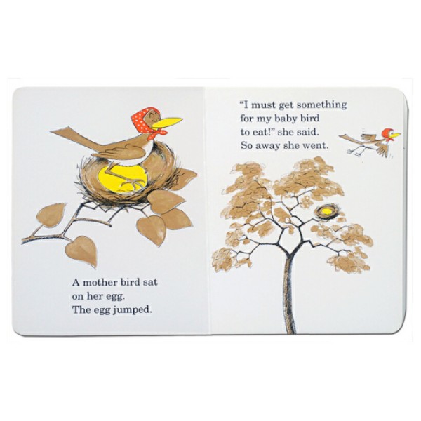 鸟妈妈正在孵蛋。蛋动了一下,鸟妈妈知道她的宝宝就要出来了。她觉得应该先去找点吃的给她的宝宝,于是她飞了出去。这时,蛋壳碎了,冒出来一只小鸟。小鸟看不到他的妈妈,他决定要去找妈妈。他问猫咪:“你是我的妈妈吗?”猫咪看着他,什么也没说。他问母鸡:“你是我的妈妈吗?”母鸡说不是。接着,他又问了狗、奶牛、汽车、小船、飞机,可他们都不是他的妈妈。小鸟看到了挖土机,他觉得那就是她妈妈。他跳了上去,可是挖土机只发出“呼呼”的声音。挖土机把小鸟举了起来,小鸟害怕了,他想回家。原来挖土机要把小鸟送回家,这时妈妈也叼着虫子回来了。小鸟终于找到了妈妈。