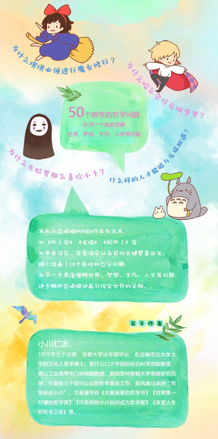 本书作者是风靡日本的“哲学叔叔小川仁志”,他认为宫崎骏的每一部动漫作品都蕴含着一个寓意深刻的重要话题,有着不逊色于哲学家的深邃思想;