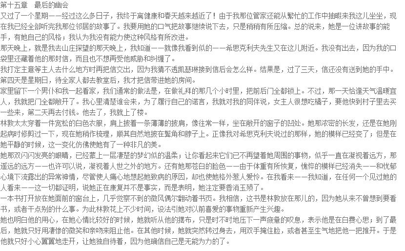 “画眉田庄是我自己的产业,先生。”他皱起眉头,慌忙打断我的话,“只要我能办到,我是决不容许任何人让我不便的。进来吧!”