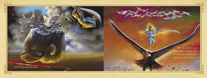 新疆青少年出版社出版的这套《江格尔》绘本历时五年,五年的时间我们和这部史诗对话,我们一起翻阅史料,一起跋山涉水,一起促膝讨论,一起从粗略的大线条走到今天的精美画面。只为让中华民族的史诗巨著通过绘本这条绚丽的通道走入孩子心中。