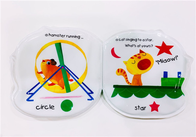 非常适合0-3岁宝宝启蒙的英文游戏洗澡书。形状认知启蒙、开发幼儿智力、调动宝宝各种感官、EVA无毒皮料防水材质、色彩鲜艳、自带摇铃、会弹性强,训练孩子手部肌肉和听力能力;洗澡也能玩哦!