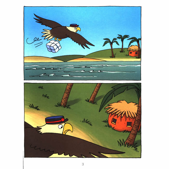《噗哩,噗啦,噗噜》 小乳牛淘淘收到了邮递员送来的包裹,是一个可充气的游泳池。她兴奋地用小乌龟充好气,再让云来下了场雨,游泳池完成了。跳进去尽情玩耍吧!一个人玩当然不够,老虎快来,蛇快来,大象长颈鹿快来……“噗哩,噗啦,噗噜”所有的小岛居民一个接一个跳进游泳池,可这还不够,房子也要进来,飞机也要来,外星人也要来,星星也要来……啊!怎么可能都进来啊,要爆炸啦!当心