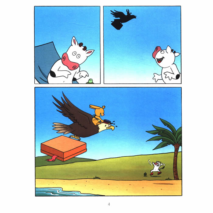 《踢哩,踏啦,突噜》 小乳牛淘淘最近得到了一把班卓琴,走到哪儿弹唱到哪儿,这可苦了小岛居民们了,她的破锣嗓子完全是谋杀脑细胞,所有的人都四处逃窜开来。老虎听到她的歌声惊吓过度,蛇听到她的歌声瞬间晕厥,树木听到她的歌声尖叫逃亡,连海浪都吓得退潮了……难道就没有人喜欢我们可爱的小乳牛淘淘那不堪入耳的难听歌声吗?这可不一定哦!