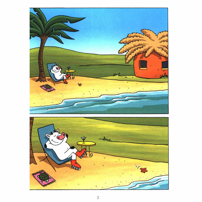 ◎疯狂,捣蛋,淘气的无敌霹雳小乳牛来啦! ◎绝顶幽默搞笑的无字漫画。 ◎诙谐风趣,幽默搞笑,每一页都有意想不到的笑点,令人捧腹大笑。 ◎漫画色彩明快、细节丰富,流畅的画面和巧妙的细节像动画片一样让人欲罢不能。 疯狂,捣蛋,淘气的无敌霹雳小乳牛来啦!淘淘生活在她的牛牛天堂小岛上,她是只无比淘的小母牛。因为她的存在,小岛上的生活似乎总是一波未平一波又起。今儿她买了个移动游泳池,想邀请大家跳进来消消暑,谁知“批哩啪哩扑噜”所有岛民都跳进来还不够,房子也要进来,飞机也要来,外星人也要来,星星也要来……啊!!!怎么可能都进来啊,要爆啦!!明儿她的小堂弟兔兔来了,她拽着他到处跑到处玩儿,她是玩得痛快了,可小兔兔就惨了,吃了小乳牛的特制套餐差点儿辣死,瞬间从嘴里喷火而出;出去逛小岛,差点儿被各种奇怪物种给吃了,弄得一身的伤,而小乳牛呢,活碰乱跳,快乐逍遥。 诙谐风趣,幽默搞笑,每一页都有意想不到的笑点,让人忍俊不禁、捧腹大笑。漫画色彩明快、细节丰富,流畅的画面和巧妙的细节像动画片一样让人欲罢不能。