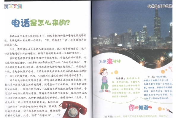 这是生活中平常的一天:起床后你打开自来水洗脸刷牙,从冰箱里拿出牛奶放到微波炉里加热;吃完早饭你骑着自行车去上学,挂在胸前的MP3播放着你喜欢的音乐,嘴里的薄荷口香糖散发出清凉的香味,一路上秋天的落叶纷纷扬扬飘落在地上…… 晚饭后你一边喝着冰爽的冷饮,一边打开电脑开始做老师今天布置的作业。妈妈在用吸尘器打扫卫生,全自动洗衣机响起了衣服已洗好的嘀嘀提醒声,爸爸在给朋友打电话说明天要去做x光检查。电视里正在重播奥运会闭幕式,一辆汽车驶过窗前,屏幕的声音、图像都受到干扰,直到汽车开远了才恢复正常,你又能欣赏到开幕式上美丽眩目的焰火了…… 我们习惯了这样便捷的生活,却很少想一想——自来水为什么会自动流出来?冰箱为什么能冷藏食物?我们用的电是从哪里来的?微波炉为什么能把食品弄熟?骑自行车为什么不会倒下来?MP3是什么?薄荷为什么特别清凉?树叶为什么会飘落到地上?为什么不能喝太多的冷饮?人类的第一台电脑是怎么来的?吸尘器为什么能吸走灰尘?洗衣机为什么能洗干净衣服?电话为什么能传送声音?为什么x射线能透过人体?电视画面为什么会受到过往交通工具的干扰?焰火为什么能绽开美丽的火花……