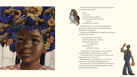 There’s just not enough…not enough money, not enough food, notenough fish for her daddy to sell at the market. Hard times havecome to the forest, but Calpurnia wants to turn them back into softtimes. With her little dog Buggy Horse and a tip from old MotherAlbirtha, the wisest person in the forest, Calpurnia finds a secretriver and uses the pink paper roses from her hair to catch enoughbeautiful catfish to feed the whole swamp land —with some left overfor Daddy to sell. When she tries to find the river again the nextday, Mother Albirtha tells her, “Child, sometimes a thing happensonce, and does not ever happen anymore….You caught catfish whencatfish were needed…you will not find the river again.” This storyby the Pulitzer Prize winning author of The Yearling and literaryicon Marjorie Kinnan Rawlings is about living in a time of want,yet it is overflowing with riches—stunning language, mysticalhappenings, wondrous, wondrous artwork. Beautiful in all ways thata book can be beautiful, this unforgettable picture book is aclassic in the making.