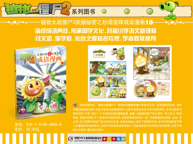 本系列图书以“植物大战僵尸2”游戏中的植物和僵尸形象为主角,采用漫画的形式,演绎中国经典成语故事,对接小学语文新课程标准,让孩子在哈哈大笑中学习成语知识。本书为该系列图书的第18册,通过一个个轻松诙谐的漫画故事,幽默、风趣地讲述了功成名就、万马奔腾、学贯中西、心照不宣等36个成语的内涵和用法。书后附有成语知识一览,对本册成语的典故、出处、近义词、反义词等知识做了更为详尽的补充,并在此基础上进行了拓展和延伸。本书不仅能把孩子带入妙趣横生的成语世界,让孩子轻松体会成语的魅力,还能激发孩子对传统文化的热情,让孩子增强文化自信,提升综合素养。
