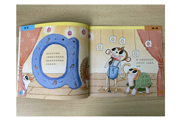 •画面丰富,贴近儿童心理:书中包含众多可爱卡通形象,如大眼猴、喔喔鸡、嘟嘴鱼等,每一个小动物其实就是孩子自己,他们的动作表情、活动场景,都是孩子们熟悉的,让孩子们产生亲近感和共鸣。靓丽的画面、鲜艳的色彩,图文并茂的编排,能吸引孩子们的注意力,让孩子们爱上学拼音。