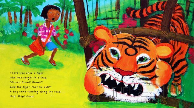 本书描述的是一个流传于印度的预言故事。话说一个小男孩在解救了一只被陷阱困住的老虎之后,老虎反而食言要吃掉他。孩子心有不甘,要路过的动物们来评评理,可是不管是山羊还是大象,都因事不关己,害怕地赶快离开。最后聪明的狼用智慧让老虎再度回到陷阱里,解救了小男孩,故事告诉大家“守信”的重要!