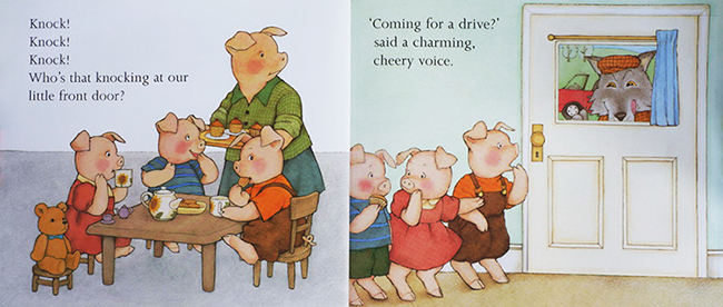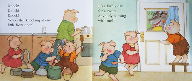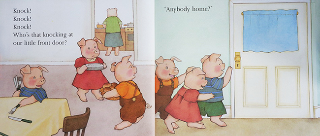 GO AWAY MR.WOLF 每页为翻翻书.可翻开门.看看到底是不是猪爸爸回来了~