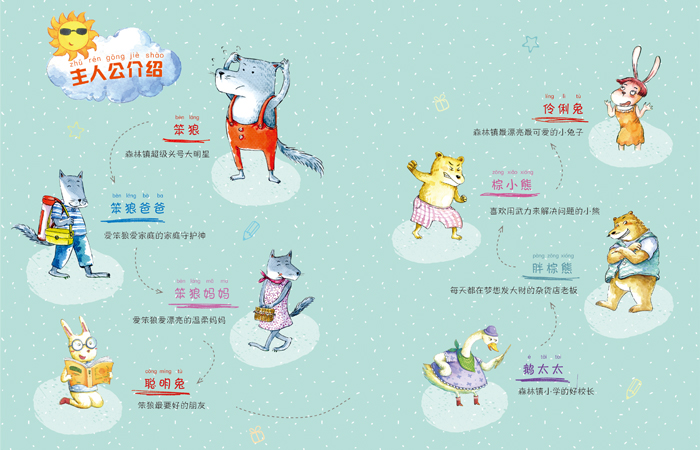 系列故事书《笨狼的故事》是十分出色的作品,里面的有些故事会让我想起英国作家米尔恩的名著《小熊温尼·菩》的幽默,因为它不仅同样以人物的性格推动故事的展开,而且小笨狼的天真、善良、无知但却充满了求知欲和行动力的性格也与小熊温尼·菩有几分相似。