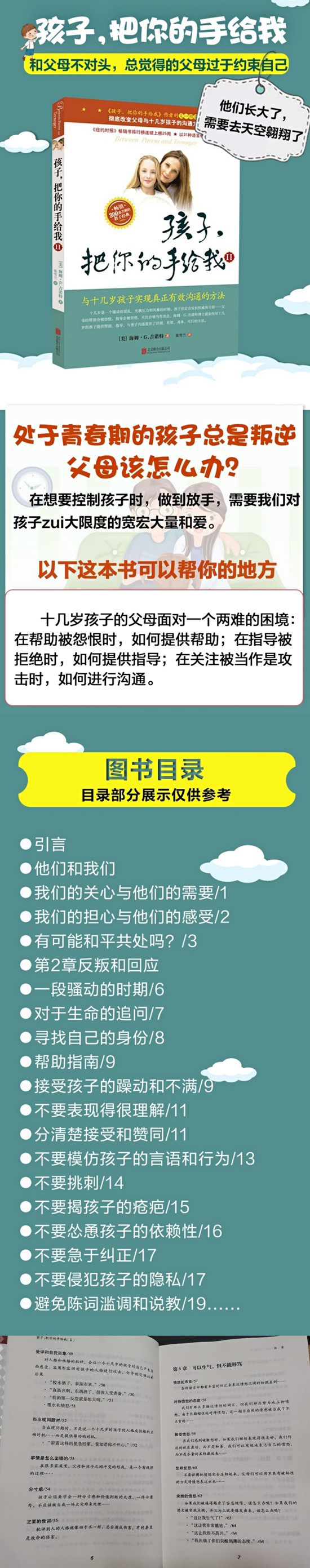 这是一本经典家教书。十几岁是一个骚动而混乱、充满压力和风暴的时期,孩子注定会反抗权威和习俗——父母的帮助会被怨恨,指导会被拒绝,关注会被当作攻击。海姆?G.吉诺特博士就如何对十几岁的孩子提供帮助、指导、与孩子沟通提供了详细、有效、具体、可行的方法。