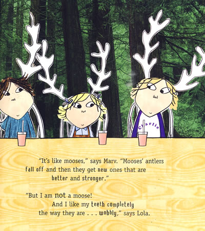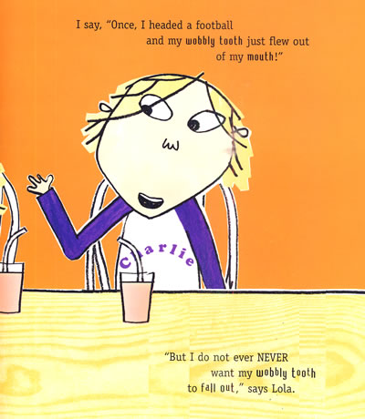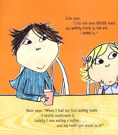 At first, Lola does not want her wobbly tooth to ever fall out, but when she learns about the tooth fairy, she wiggles and wobbles her tooth until out it pops! Finally it is time to go to bed—but the tooth has disappeared! Now how will Lola convince the tooth fairy that she really did lose her tooth? Big brother Charlie has just the answer—if Lola has dreams so lovely that she smiles while she sleeps, the tooth fairy will be able to see for herself!