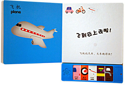 《交通工具》“翻山越岭身子长,到站鸣笛把歌唱。”小朋友,你知道这是哪一种交通工具吗?还有这长方形、圆形的色块是干什么用的呢?这奇怪的空洞会不会告诉你答案呢?打开后一页,按响紫色按键,“轰隆!轰隆!”原来这是一辆火车,你坐过火车吗?它是一种身子很长,能载好多人的交通工具,而且它一站一站可以跑过很多地方哦!