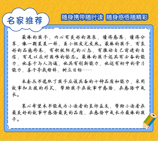 本书精选数十篇有关珍惜的故事,每篇故事都附有精辟的点评,帮助青少年朋友在轻松愉快的阅读中,珍惜自己所拥有的的一切。