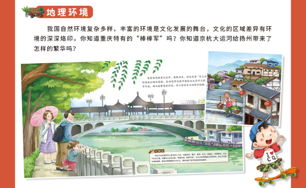 旅行,是一种生活方式,更是一种生活态度。 人为什么要旅行? 是为了体验另一种生活,了解另一个地方的人们的风俗习惯、历史文化,甚至是价值观。让孩子们旅行,能帮助他们对不同的环境、地域保持饱满的好奇心、探索欲,对异文化保有尊重,对自然保有敬畏。这套中国地理文化绘本能让您和孩子足不出户,来一趟精神上的旅行。 这套绘本的十座城市都是中国城市,内容注重景点 美食 历史,却不是简单的旅游攻略,而是以故事的形式,用轻松愉快的叙述让孩子们能够知晓这些城市的历史沿革以及在中国的地位,全方位掌握城市特色,也是一套孩子们出行前必备的“准备书”。