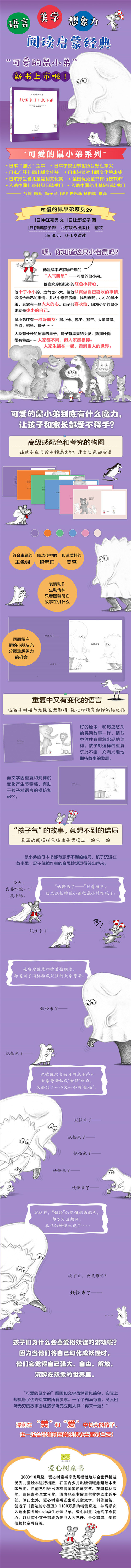 “可爱的鼠小弟”系列是日本绘本作家中江嘉男和上野纪子的不朽经典,自1974年问世以来就深受孩子们的喜爱,囊括了日本各大童书奖项,被誉为“世界绘本经典中的经典”。自2005年引进出版后,该系列长期位于儿童畅销书排行榜前列,销量累计超过1500万册,成为广受欢迎的儿童早期阅读启蒙读物。小小的、善良的鼠小弟成为了几代孩子难忘的童年伙伴。透过鼠小弟,孩子们看到真善美,并在感动中体验爱与被爱的快乐,人与人之间交往的真谛。