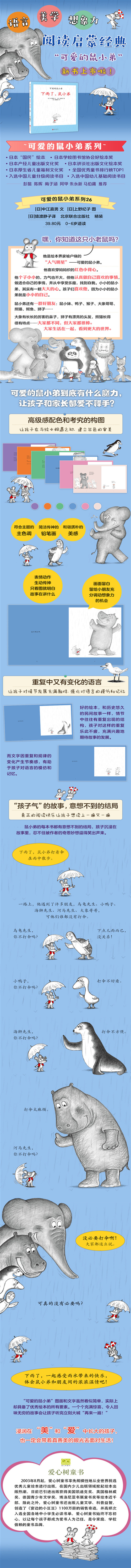“可爱的鼠小弟”系列是日本绘本作家中江嘉男和上野纪子的不朽经典,自1974年问世以来就深受孩子们的喜爱,囊括了日本各大童书奖项,被誉为“世界绘本经典中的经典”。自2005年引进出版后,该系列长期位于儿童畅销书排行榜前列,销量累计超过1500万册,成为广受欢迎的儿童早期阅读启蒙读物。小小的、善良的鼠小弟成为了几代孩子难忘的童年伙伴。透过鼠小弟,孩子们看到真善美,并在感动中体验爱与被爱的快乐,人与人之间交往的真谛。