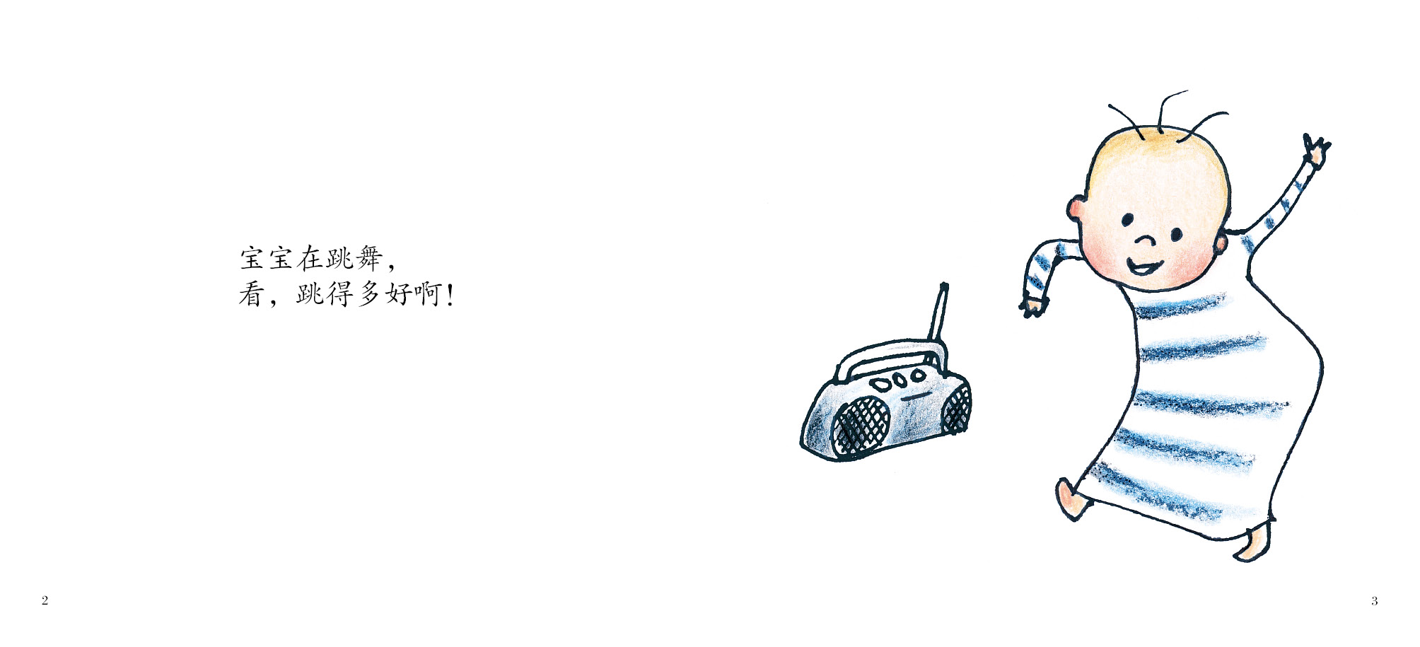 文字简洁、朴实无华,但画面表现力非常强,擅于用宝宝面部表情和肢体语言来描述一个婴儿清晰的情感曲线。