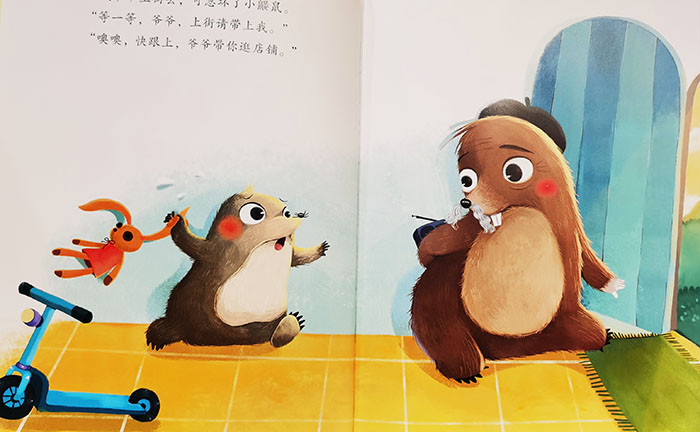 鼹鼠爷爷上街去,小鼹鼠急急忙忙跟着走,鼹鼠奶奶上街去