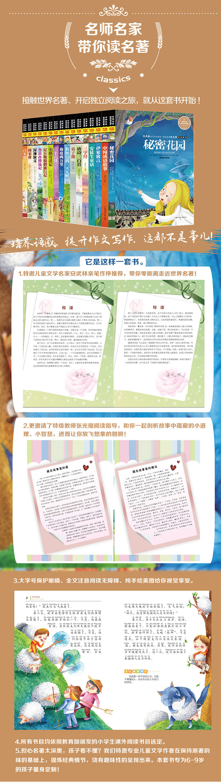 安武林亲笔作序推荐 特级教师张光璎阅读指导 彩图版世界名著 新课标全注音 提升作文写作 轻松练习语感 6-9岁