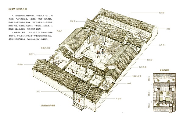 中国传统建筑是民族智慧、思想和艺术的结晶,承载着中国工匠精湛技艺与中国文化的博大精深。四合院,这种合院式建筑是中国传统住宅中*普遍的形式,已经有3000多年的历史,俯瞰呈一个“口”字形,庭院的东西南北四面建有房屋,围合成一个整体,寓意着家和,人和,财和,万事和。家和万事兴,是中国人生活的写照,*有中国人生活的味道。