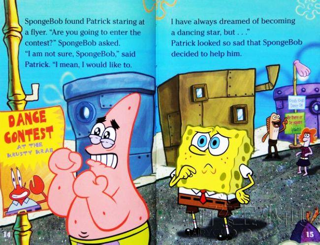 n this Level 2 Ready-to-Read story, Mr. Krabs decides to drum up some more business by having a dance competition at the Krusty Krab (lots of dancing = hungry customers). Everyone is excited to put on their dancing shoes: Squidward starts to practice his modern dance routine, Larry the Lobster will cha-cha, and Sandy is all set with her Texas two-step.…But what will Patrick perform? With the help and encouragement of his best pal, SpongeBob, Patrick gets into shape—and ready to become a dancing star!