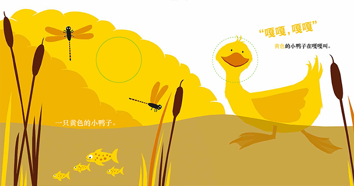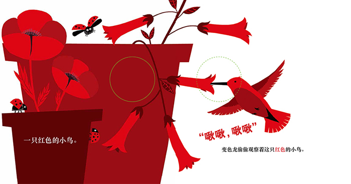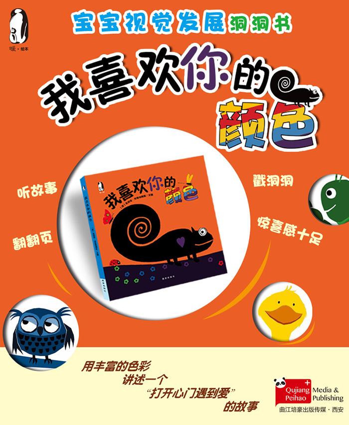 《我喜欢你的颜色》内容简介:《我喜欢你的颜色》讲述了一只变色龙的惊奇发现。变色龙原本并没有意识到这个世界是色彩斑斓的,直到有一天,他好奇地朝外面看了看。首先,他看到了红色的小鸟、然后他继续前行,看到了橙色的小老虎、黄色的小鸭子……每看到一种颜色,他的身体就会增加一种颜色,直到他走到了草丛旁,看到了一只紫色的变色龙。他突然觉得,紫色是他最喜欢的颜色,紫色让他感受到甜蜜,也让他对整个世界有了新的认识。变色龙走出自己的小天地,用心去观察,他的世界因不断发现而变得更加美好,如果你也用心去观察,也许你的世界也会大不同。《我喜欢你的颜色》特色卖点:1.幼儿视觉发展图画书;2.用丰富的色彩讲述了一个“打开心门遇到爱”的故事;3.用心去观察,你会因不断发现而变得更加美好;4.听故事、翻翻页、戳洞洞,惊喜感十足。