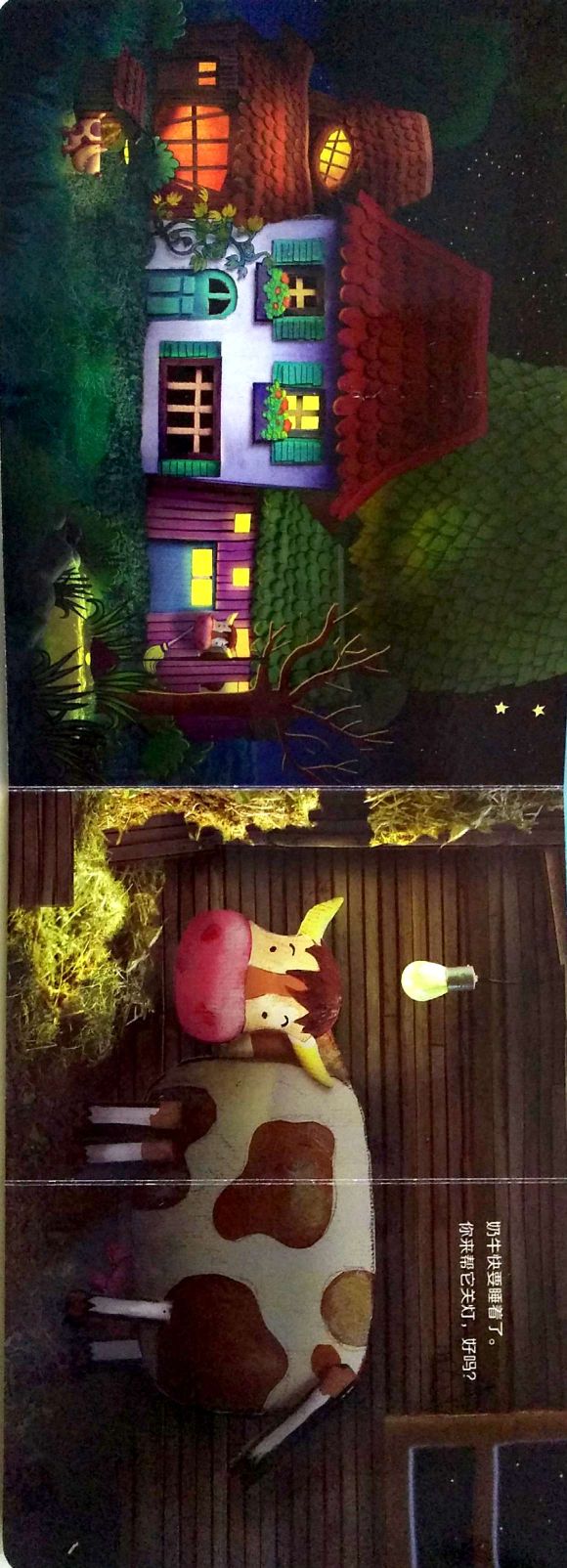 天黑了,人们都钻进被窝睡觉了,只有农庄里的动物们还醒着。不过,他们也想睡觉了。你来帮帮它们吧?嘘,轻轻揭开翻页,米你就能看到动物们睡觉的样子了……