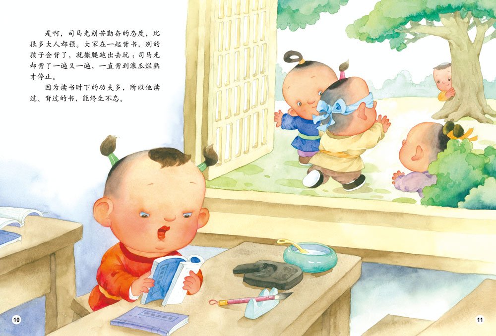 本套图画书以时间为线,将发生在10位名人先贤身上的事迹以一个个小故事的形式串联起来,通过生动的故事情节,让小读者看到这些名人的人生轨迹,以及那些对他们一生影响至深的品格的形成。故事勾勒出一个个名人的童年形象,生动又可亲近——聪明努力又正直的诸葛亮、喜爱写字而误吃墨汁的王羲之、勤奋不怕吃苦的岳飞、从小勤学聪慧的司马光、知错能改的孟子……一个个人物形象跃然纸上。