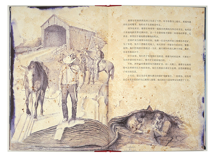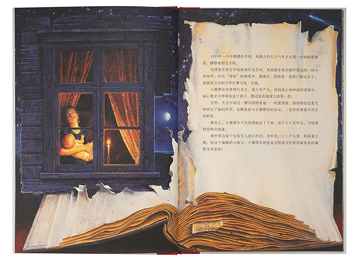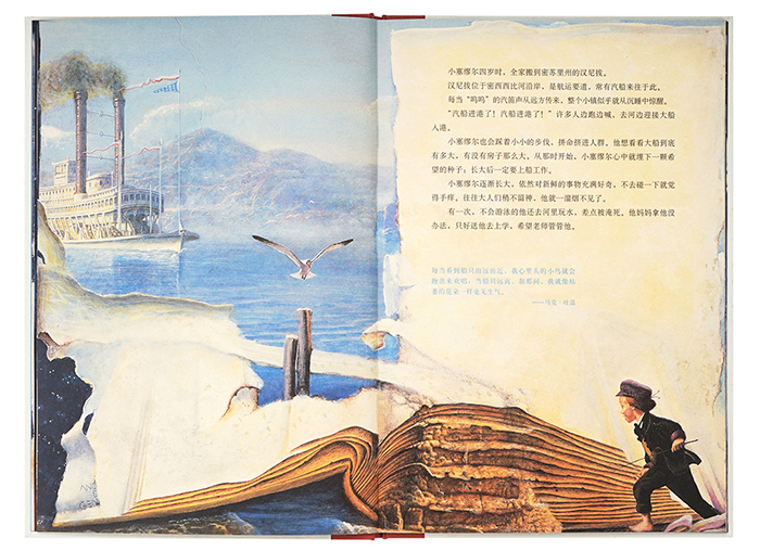 意大利知名画家安德烈亚用古雅的笔触、精巧的构图,重现阳光闪烁的大河、充满活力的港口小镇,以及马克·吐温幽默风趣、永葆童心的面貌。他将每个跨页都精心设计成泛黄的书页,让故事与角色的声音从页边透出,使平板的声音变得立体,展现出他对传记故事独到的诠释。