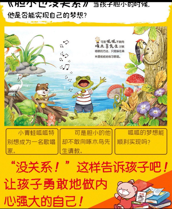 小青蛙呱呱特别崇拜啄木鸟先生,因为他可是森林里远近闻名的歌唱家。可是呱呱不敢像啄木鸟先生讨教唱歌的方法,只是躲在森林里偷偷地练习歌唱。听过呱呱演唱的水貂先生来到了他的身边,鼓励呱呱去向啄木鸟先生求教……